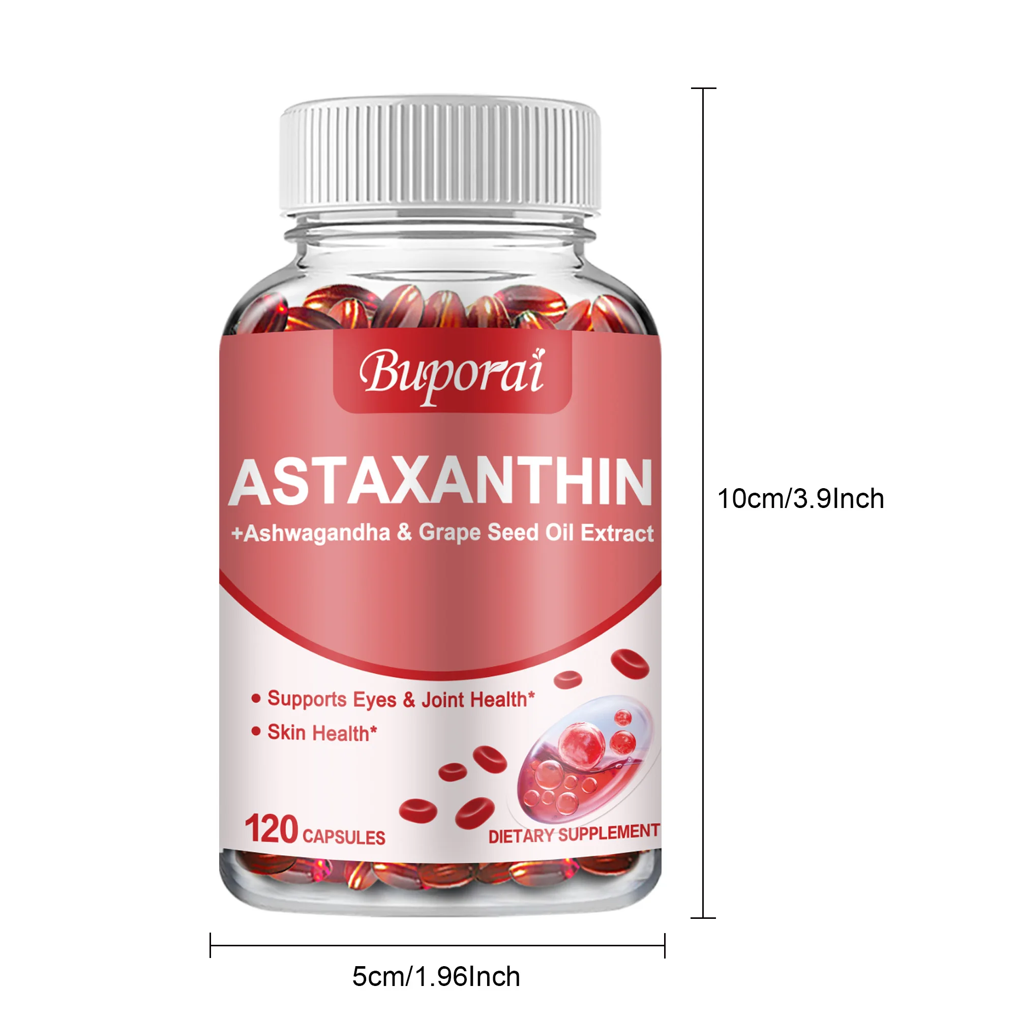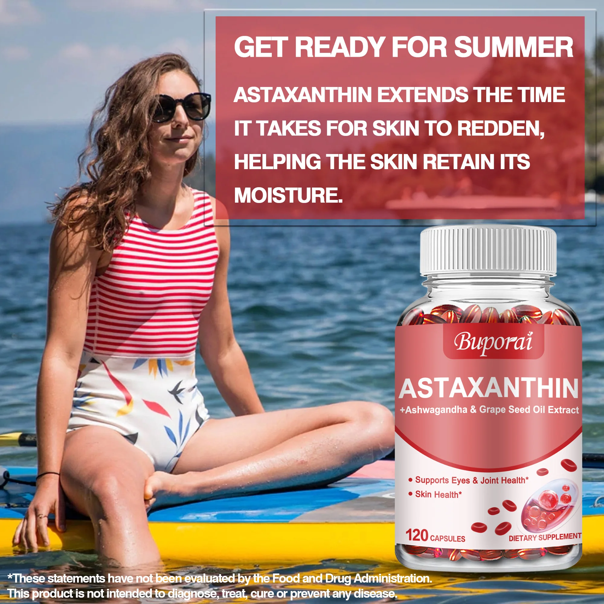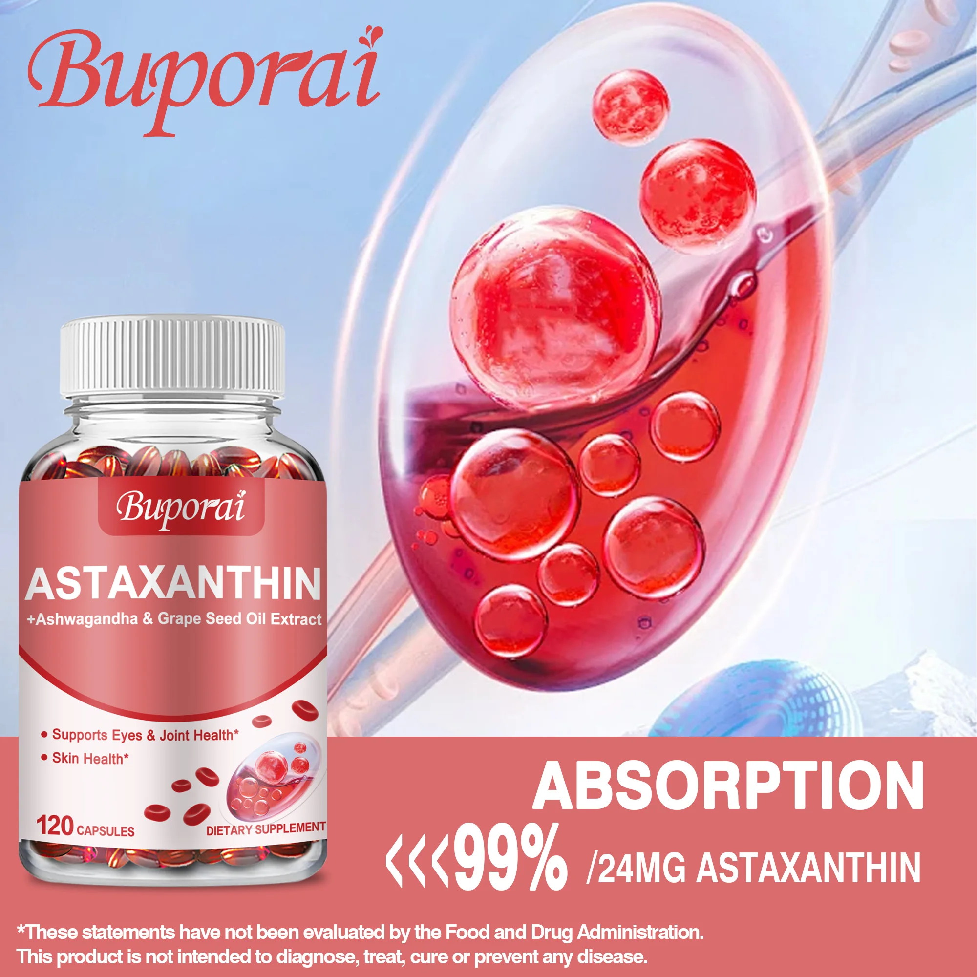 Astaxanthin 24mg – with Grapeseed Oil, Ashwagandha – Supports Cardiovascular,Eye, Joint, Skin Health, Antioxidant – 120 Capsules