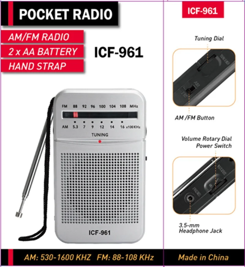 BC-R21/961/962 Mini Radio AM FM Battery Operated Portable Radio Best Reception Longest Lasting For Running Walking Home Soundbox