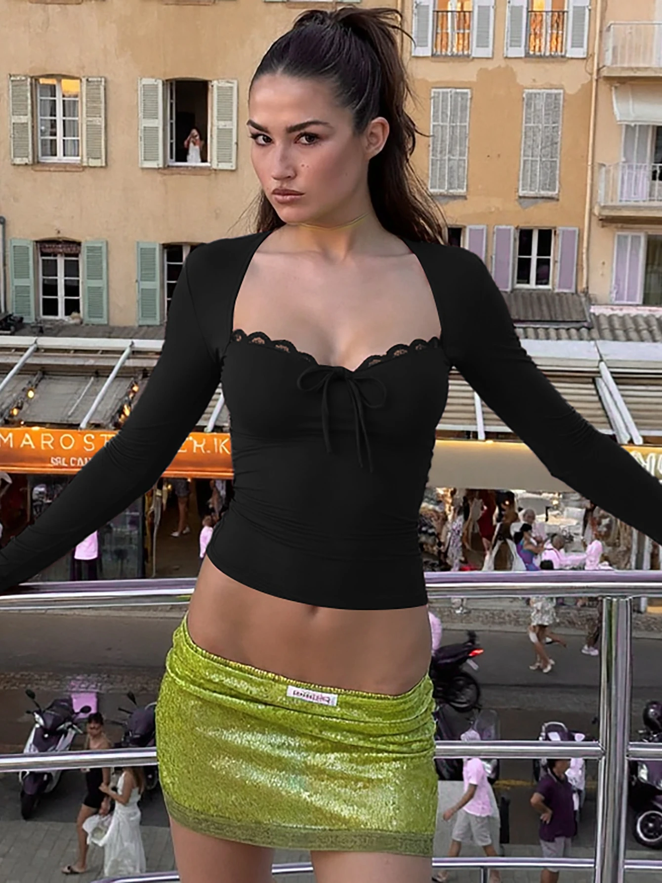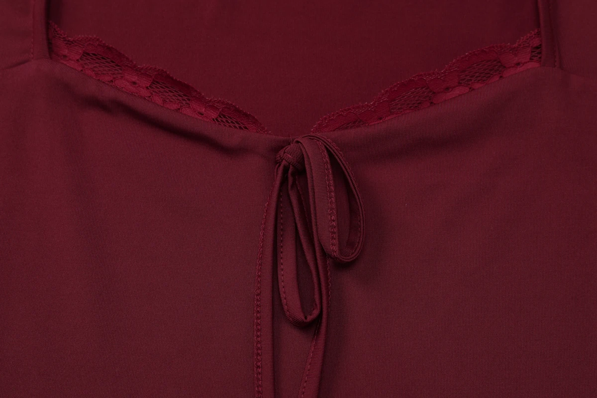 Be the first to review “Dulzura 2025 Autumn Latest Fashion Sexy Square Collar Long Sleeve Slim Lace Up Lace Ruffles Patchwork T-Shirt Party Club Clothes”