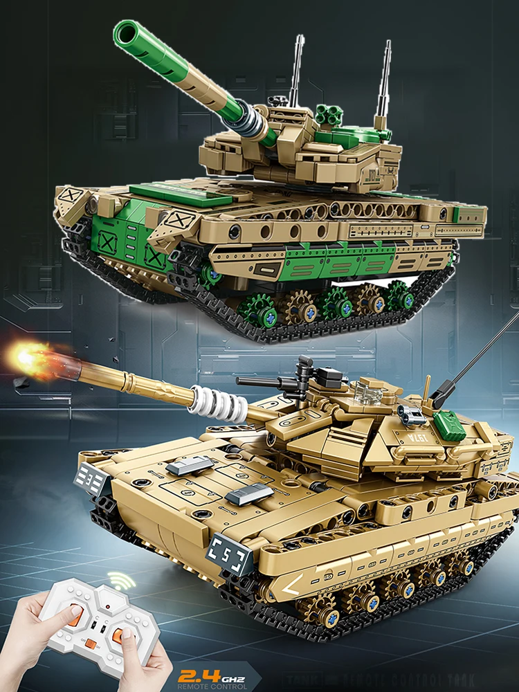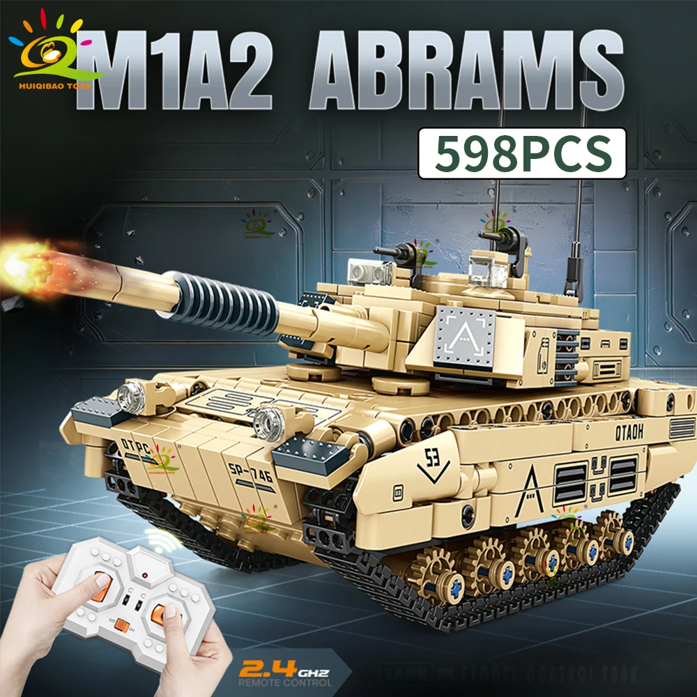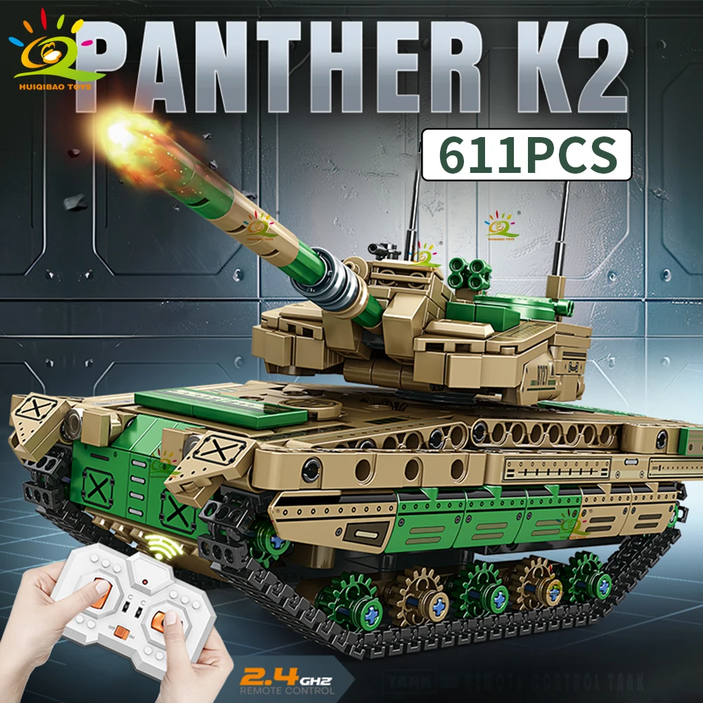 HUIQIBAO RC WW2 Military Tank Building Blocks Set for Children Remote Control Army Bricks Toy City Construction Bricks Kids Gift