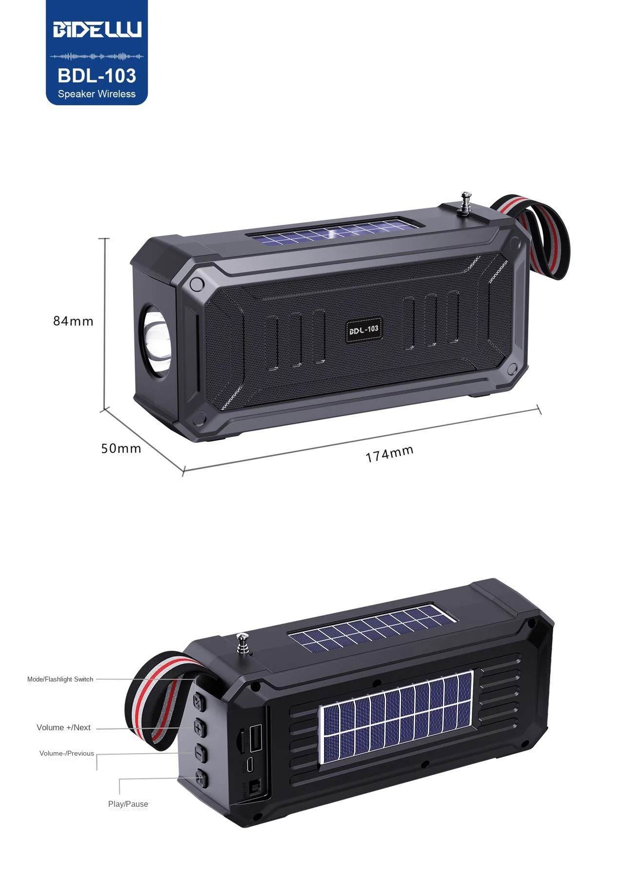 Solar Wireless Bluetooth Speaker Dual Solar Power Rechargeable Flashlight FM Radio TF USB MP3 Music Player Audio System